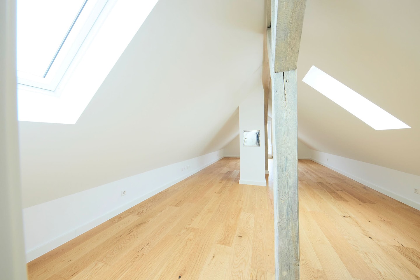 Renovation and interior construction of a completely gutted attic maisonette apartment on the 2nd floor of a comprehensively renovated multi-family building in a central location of Stuttgart-Rohr. The conversion was carried out over two levels with a reorganization of the floor plan and the integration of a large cabrio window for optimal natural lighting. In the course of the work, a bright, modern, and high-quality residential fit-out with its own garden terrace area was realized.